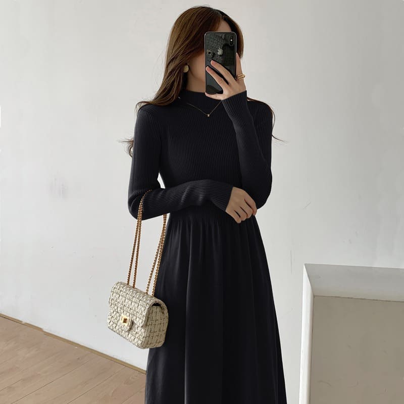 SALE 骨格ウェーブ服ニットフレアワンピース