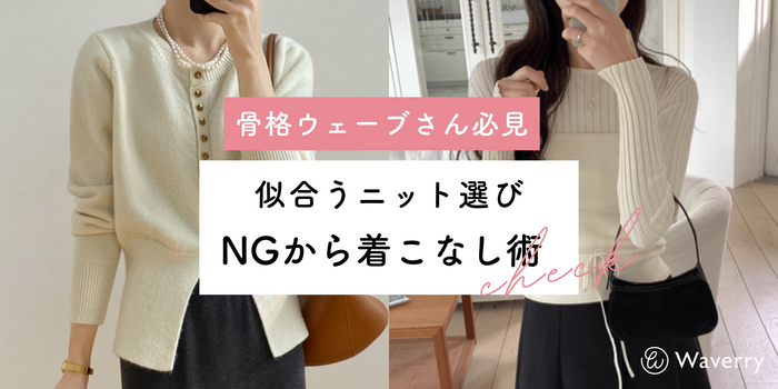 骨格ウェーブ専門通販サイト「Waverry(ウェーブリー)」では、今回紹介したポイントを押さえたニットを多数ご用意しています。