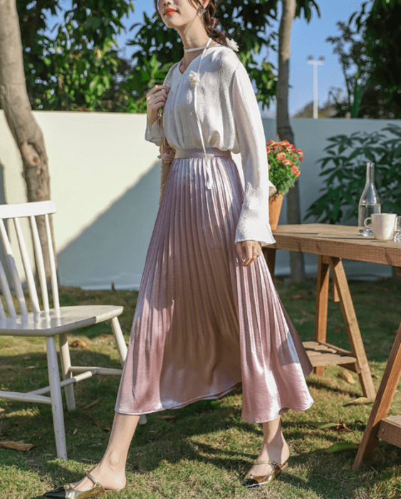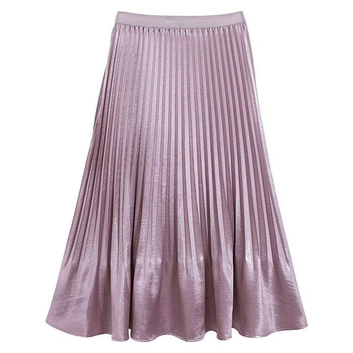 骨格ウェーブキラキラサテンAラインプリーツスカート