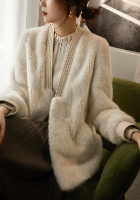 ふんわりとしたフェイクファーが華やかな印象を与えてくれるVネックジャケット。骨格ウェーブさんが得意とする、やわらか素材と上半身にボリュームが出るデザインで、自然に重心アップが叶います。Vネックが顔まわりをすっきり見せてくれるので、タートルやワンピースとの重ね着も好相性。羽織るだけで季節感と女性らしさがぐっと高まる、上品なアウターです。