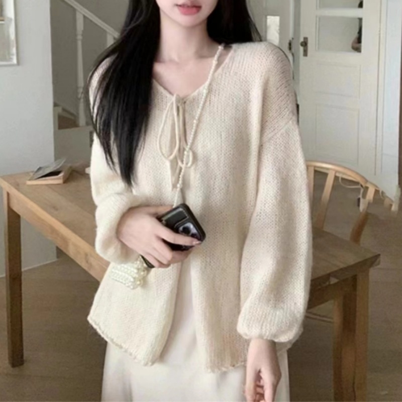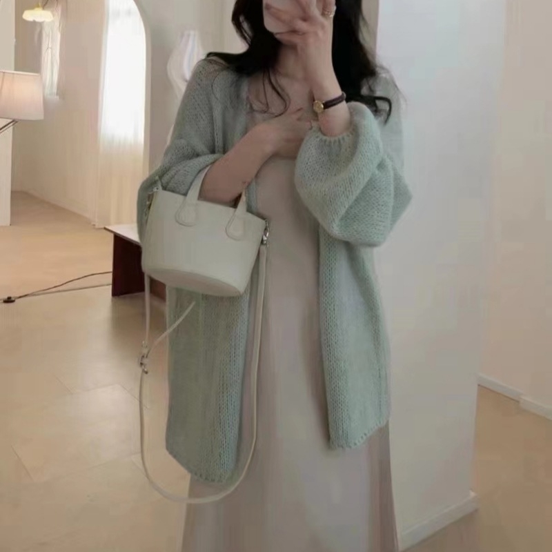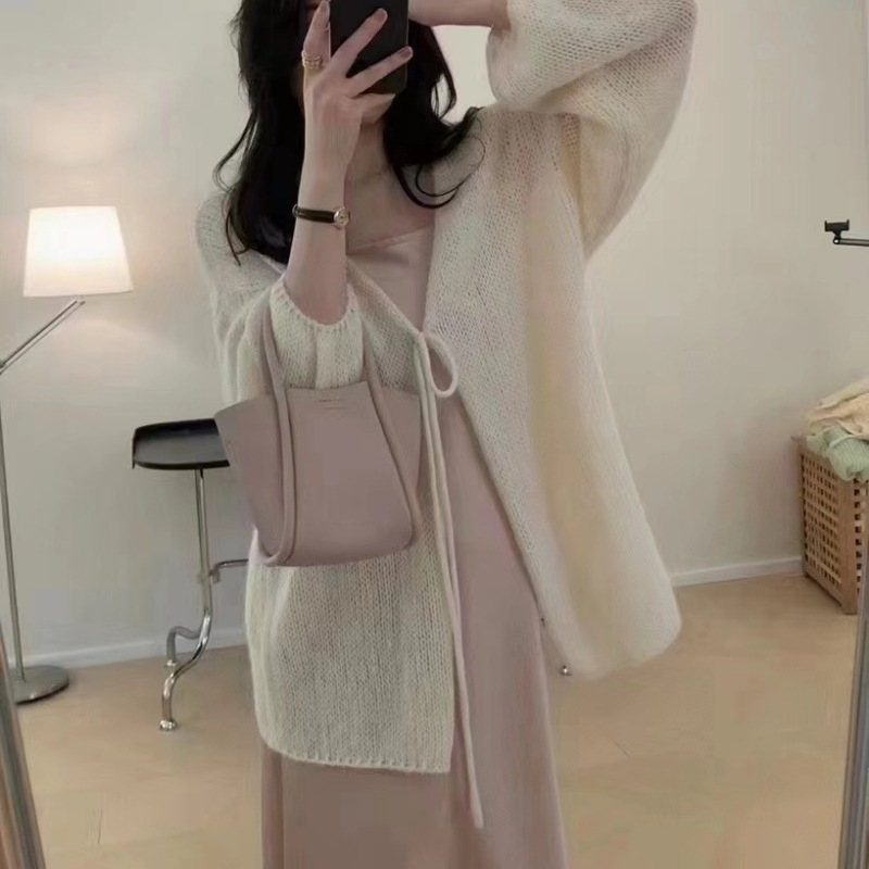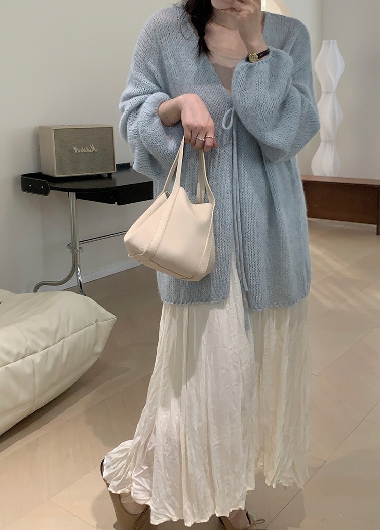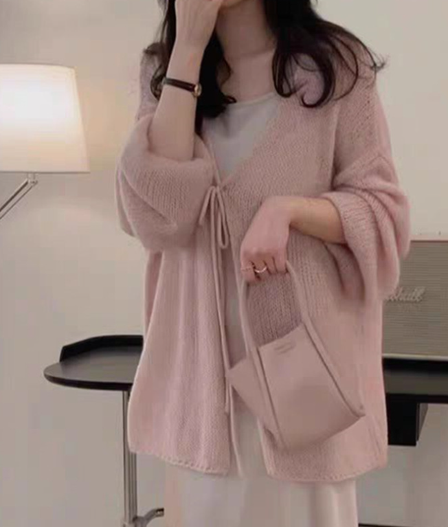 柔らかなモヘア素材が女性らしさを引き立てるVネックカーディガン。ふんわりとした質感と、自然に落ちる柔らかなシルエットが、華奢な上半身を優しく包み込み、バランスよく見せてくれます。深めのVネックがデコルテを美しく演出し、インナーとのレイヤードも楽しめる一枚。ウエストリボン付きでゆるっと着てもメリハリが出せるので、きれいめにもカジュアルにも着回しやすい万能カーディガンです。