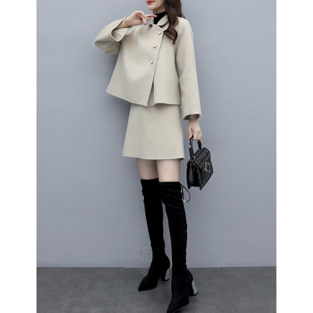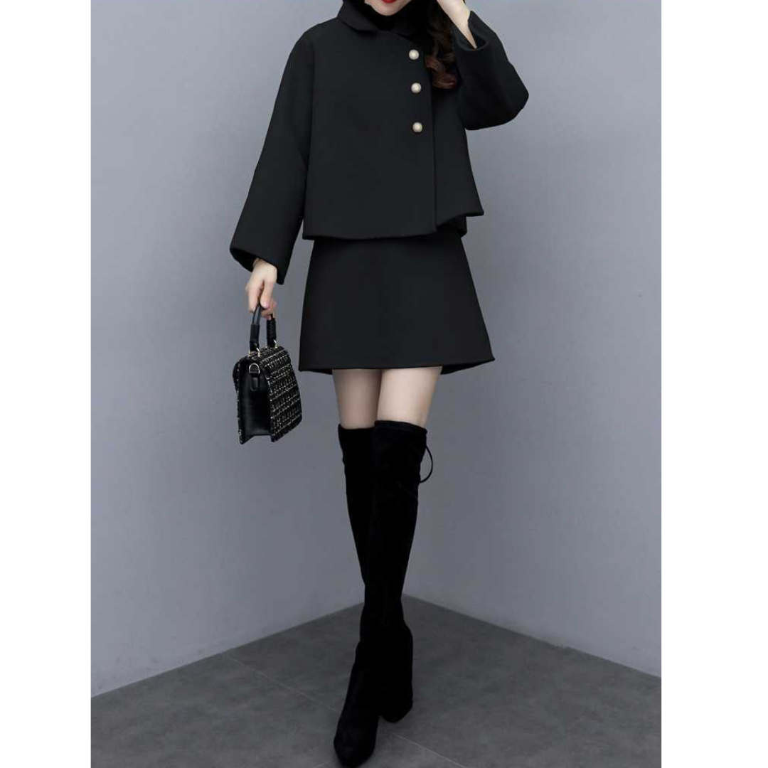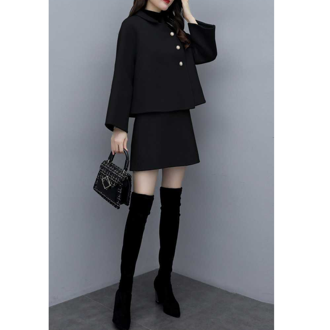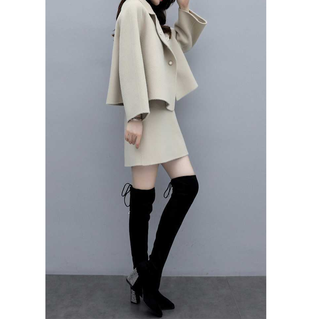 骨格ウェーブクラシカルショートコート風ミニスカートセットアップ