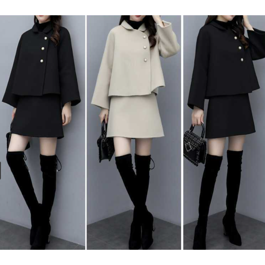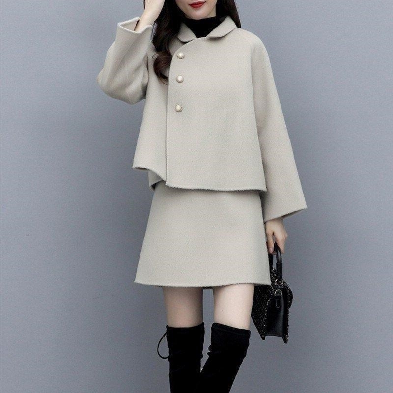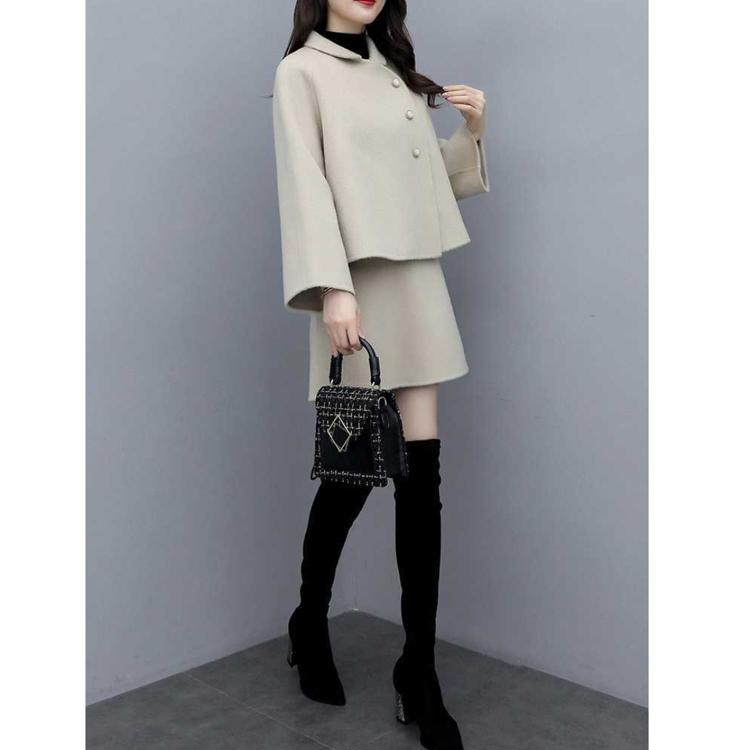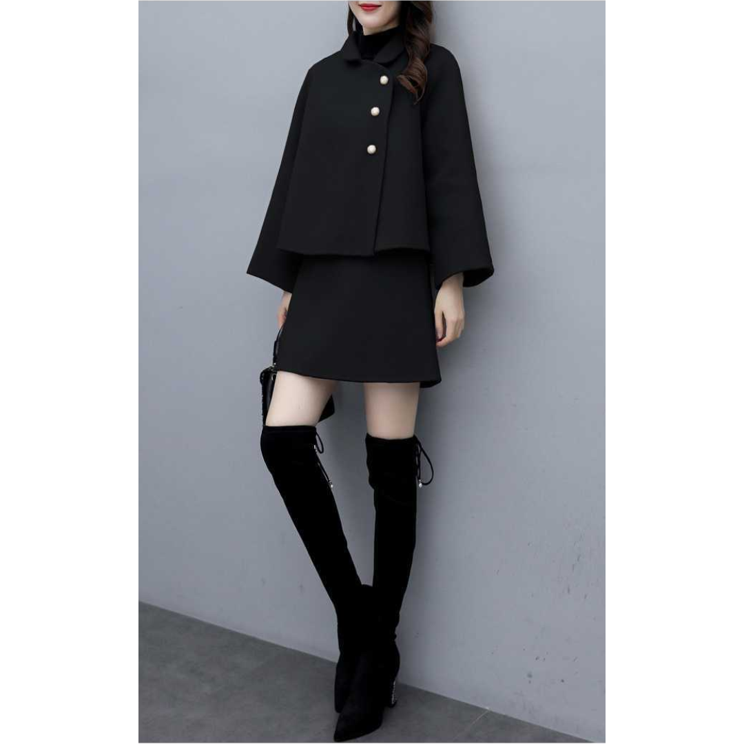 骨格ウェーブクラシカルショートコート風ミニスカートセットアップ