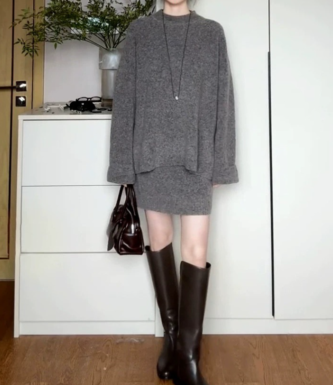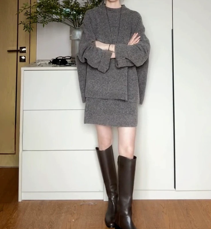 柔らかな素材感とゆとりのあるシルエットが、骨格ウェーブさんのしなやかなラインに自然になじむニットセットアップ。身体の丸みを包み込むような落ち感があり、リラックス感がありながらも女性らしい印象に仕上がります。上下セットで着るだけで、バランスの取れた大人カジュアルスタイルが完成する一着です。