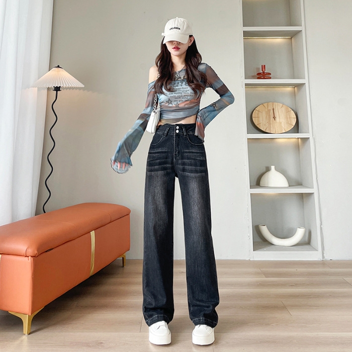 下重心に悩みがちな骨格ウェーブさんにうれしい、ハイウエストのワイドデニム。腰位置を高く見せることで脚長効果を演出し、すっきりとした印象に。柔らかくストレッチの効いたデニムなので、デニムが苦手な骨格ウェーブさんも◎太ももやヒップをやさしく包むゆったりシルエットで、下半身のボリュームを自然にカバー。やわらかめの生地で履き心地も快適。トップスをインするだけでバランスのよい着こなしが叶います。