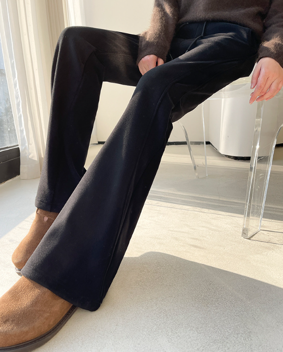 下半身に重心が集まりやすく、太ももやお尻にボリュームが出やすい骨格ウェーブさんに嬉しいブーツカットパンツ。太ももはカバーしつつ、膝下が広がるシルエットで足元に抜け感を演出。裏起毛で冬も暖かく、スタイルアップも叶う美脚アイテムです。