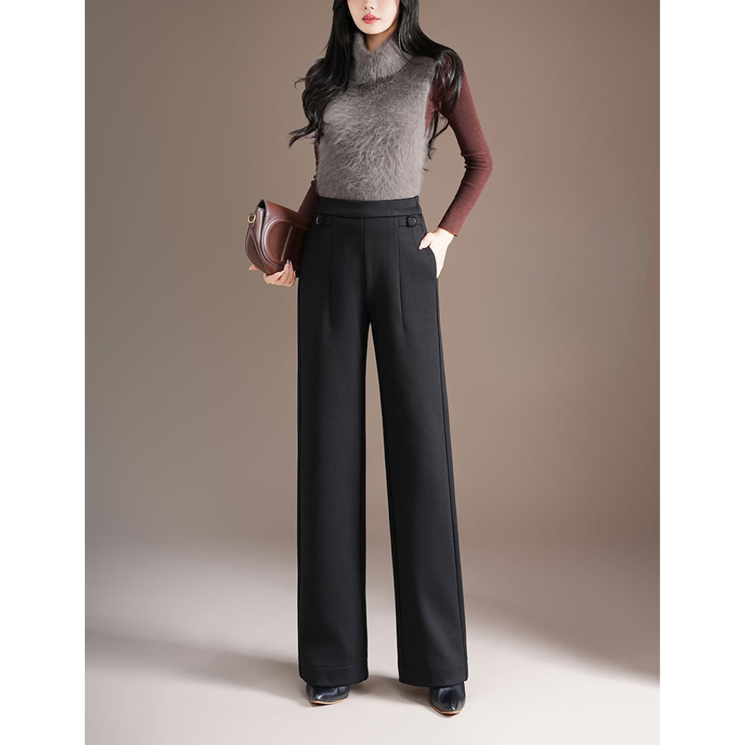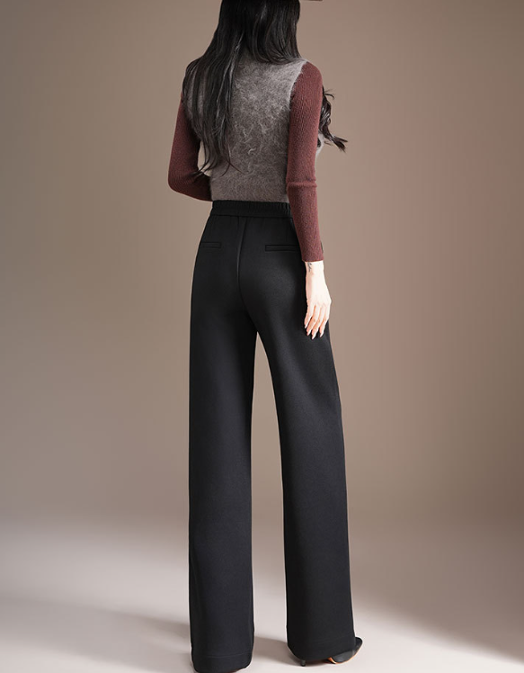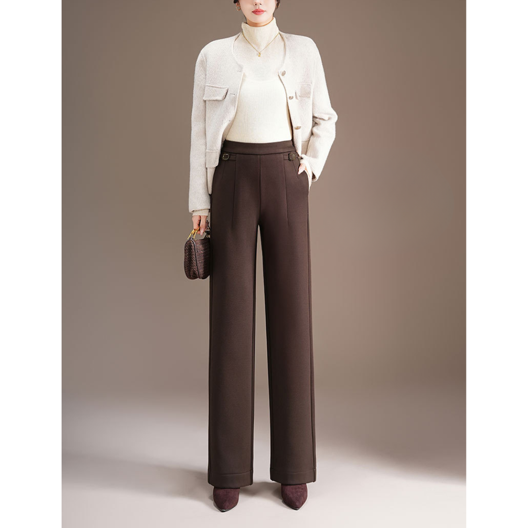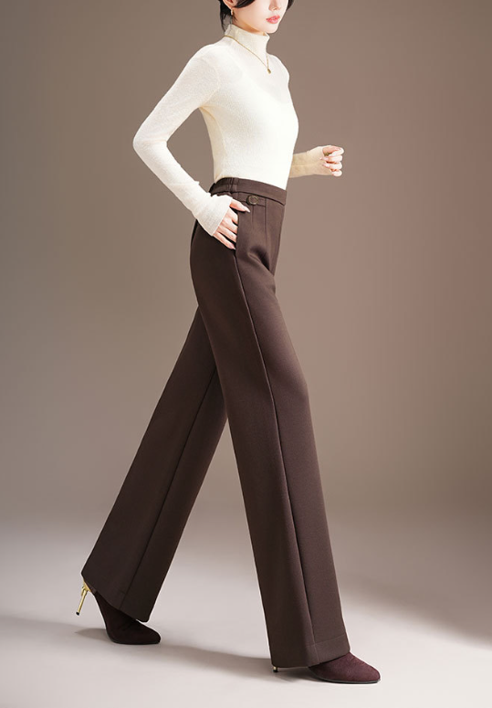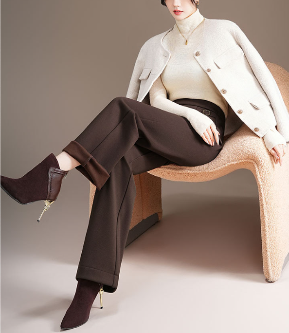 柔らかく軽い裏起毛素材と、ハイウエストのストレートシルエットが骨格ウェーブの体型バランスを美しく整える1本。フィット感のある腰まわりが上半身の華奢さと好相性。脚を長くすっきりと見せてくれる美脚パンツです。