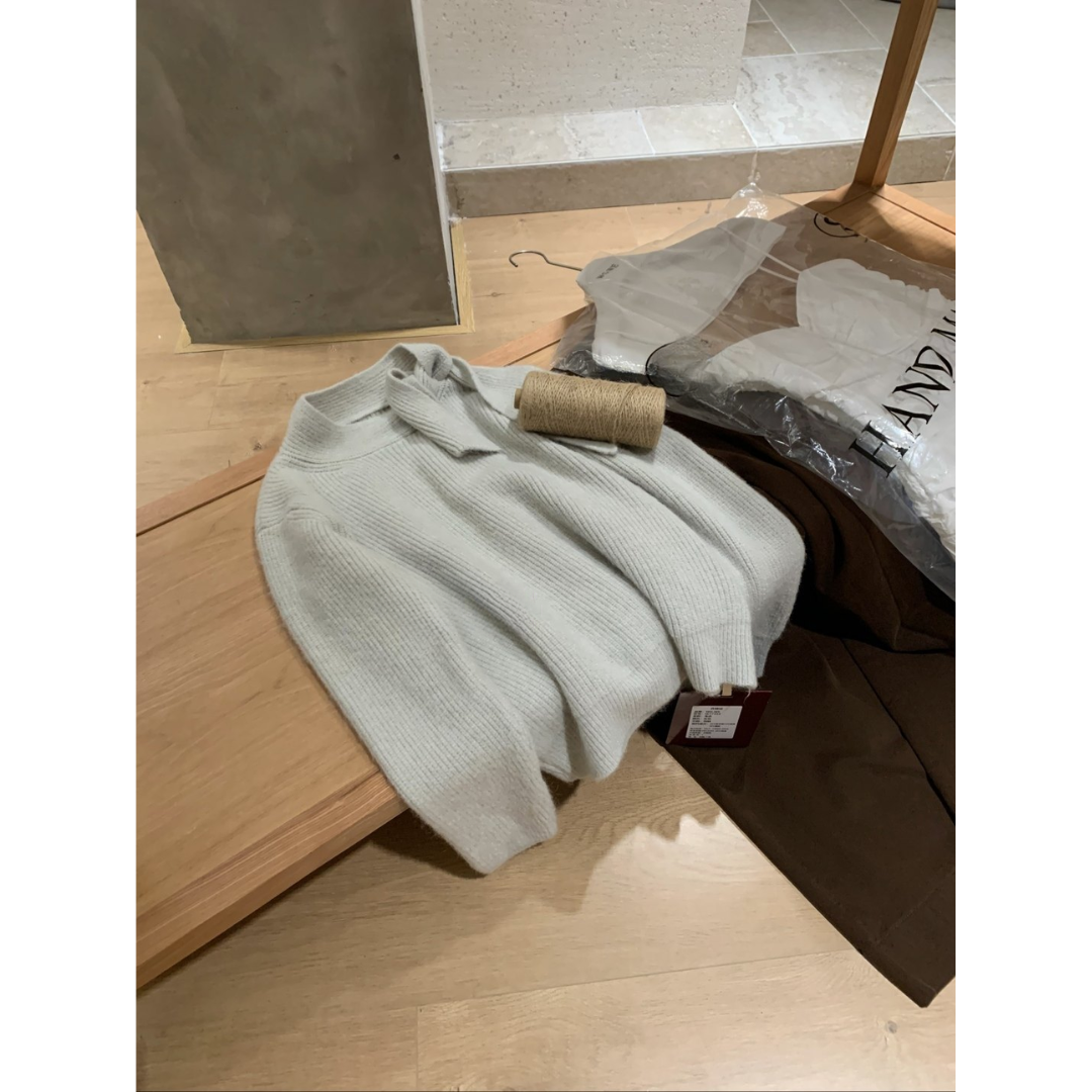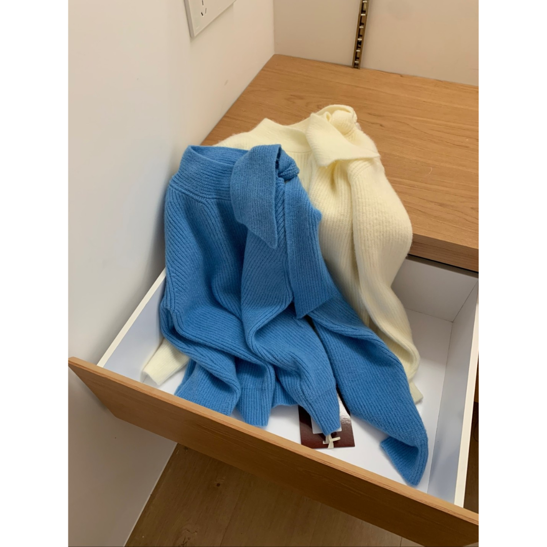 骨格ウェーブハーフネックニットトップス