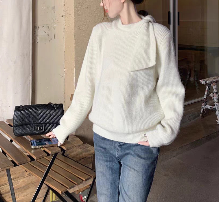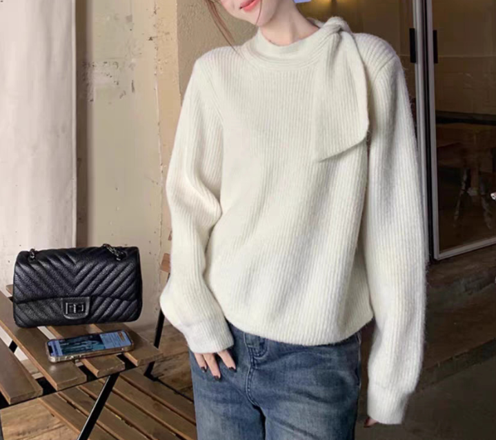 上半身が華奢に見えにくい、骨格ウェーブさんの悩みをカバーするリブニットトップス。柔らかいフィット感とコンパクトな丈感で、着膨れせず重心アップ。肩元のリボンデザインが視線を上げ、さりげなく上半身にポイントを作ってくれる嬉しい1枚です。