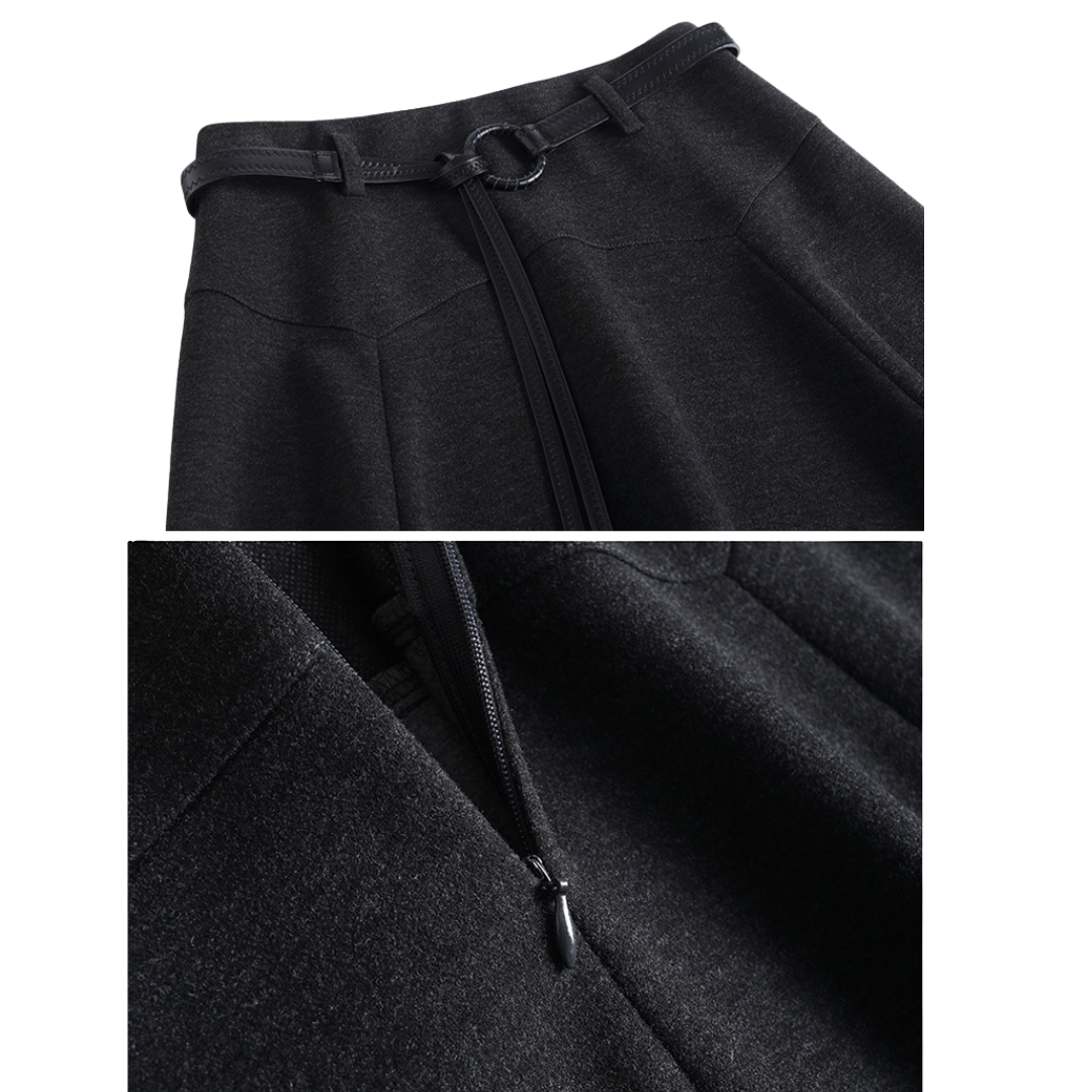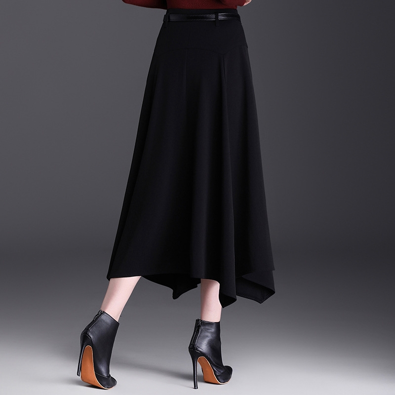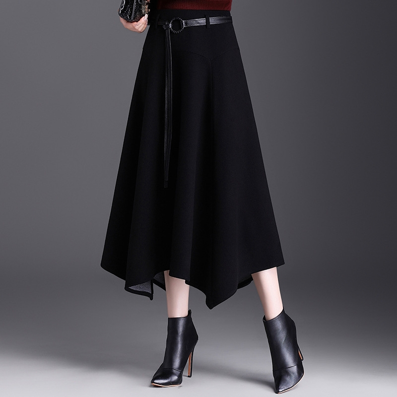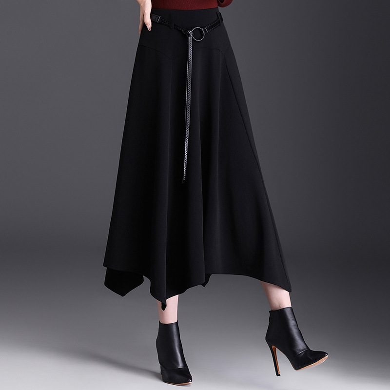 骨格ウェーブベルト付きアシンメトリーヘム ロングフレアスカート
