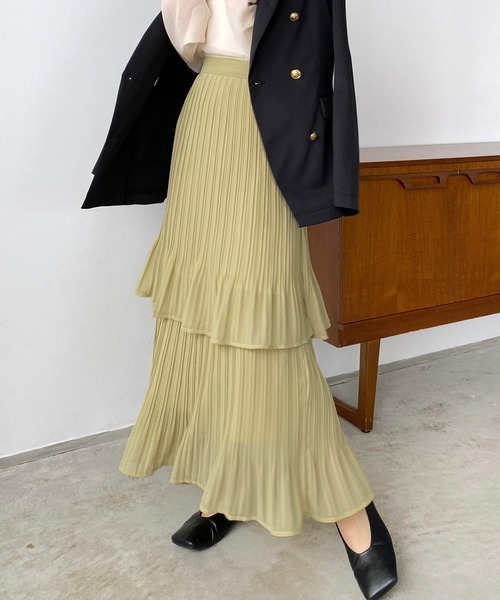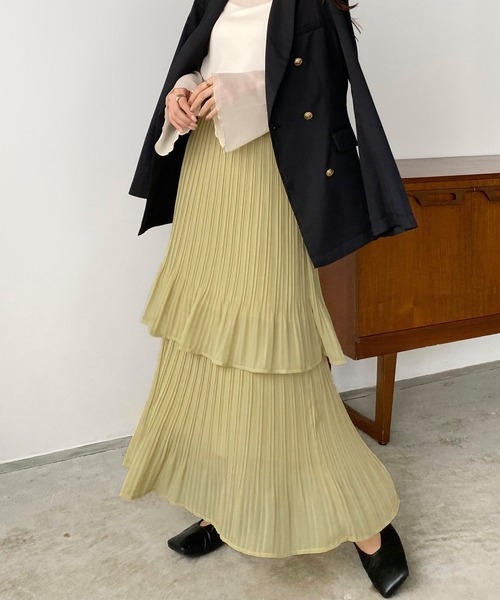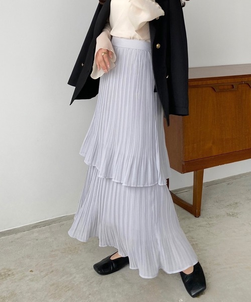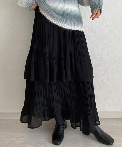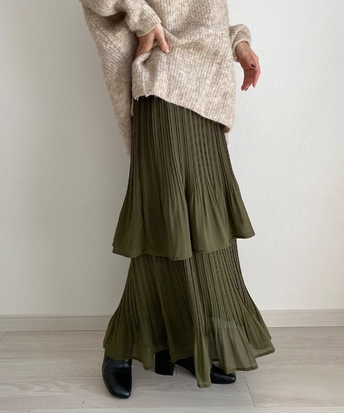 骨格ウェーブプリーツティアードスカートスカート
