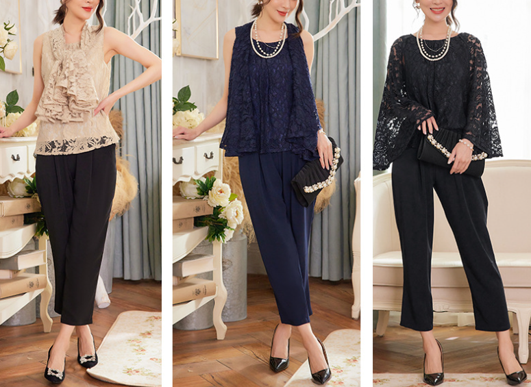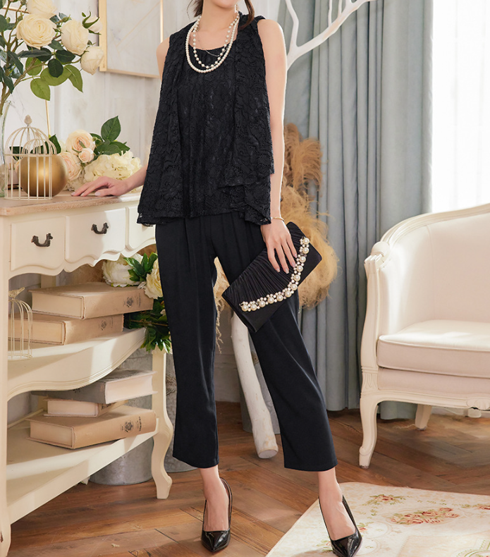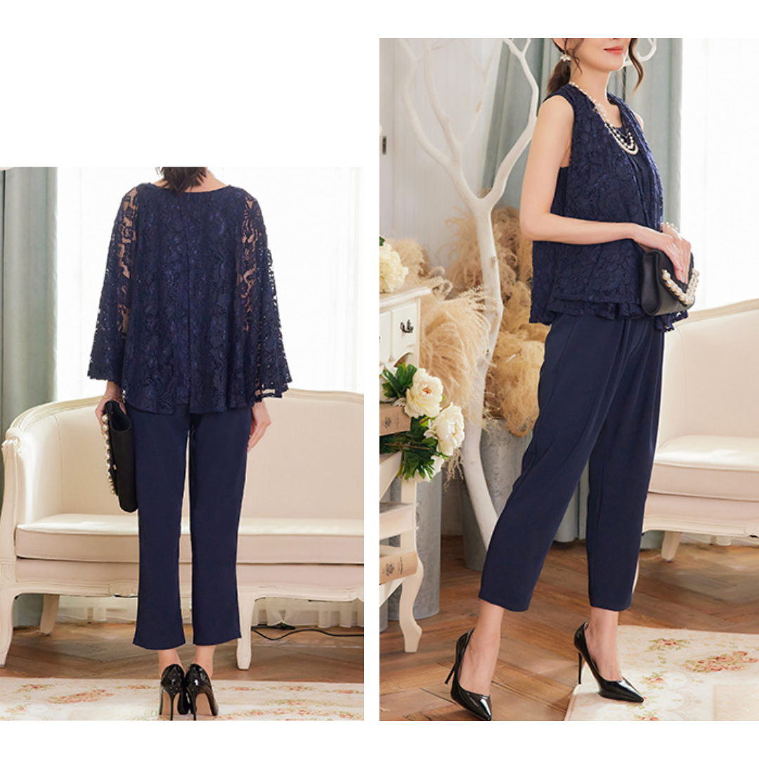 骨格ウェーブレースブラウスパンツフォーマルスーツ