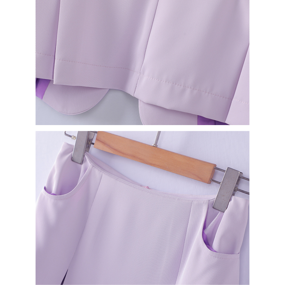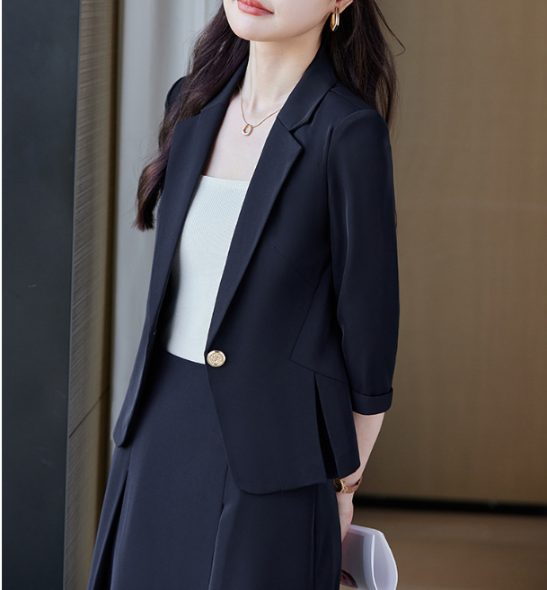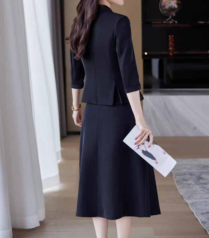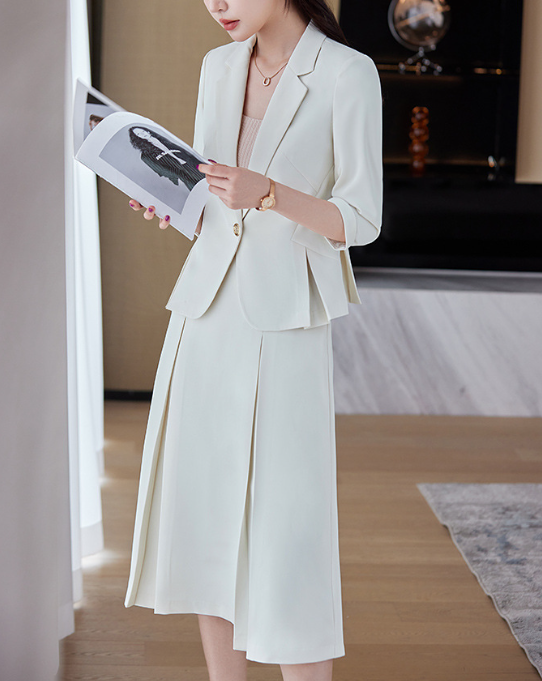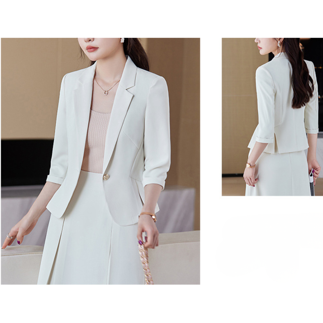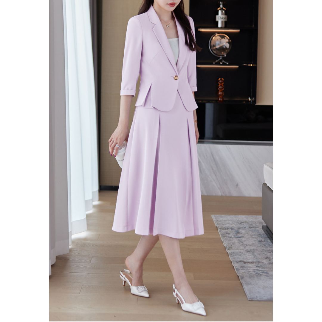 骨格ウェーブ七分袖タックスカートセットアップスーツ