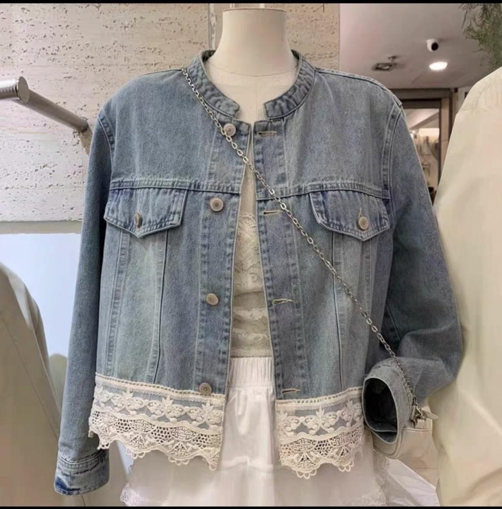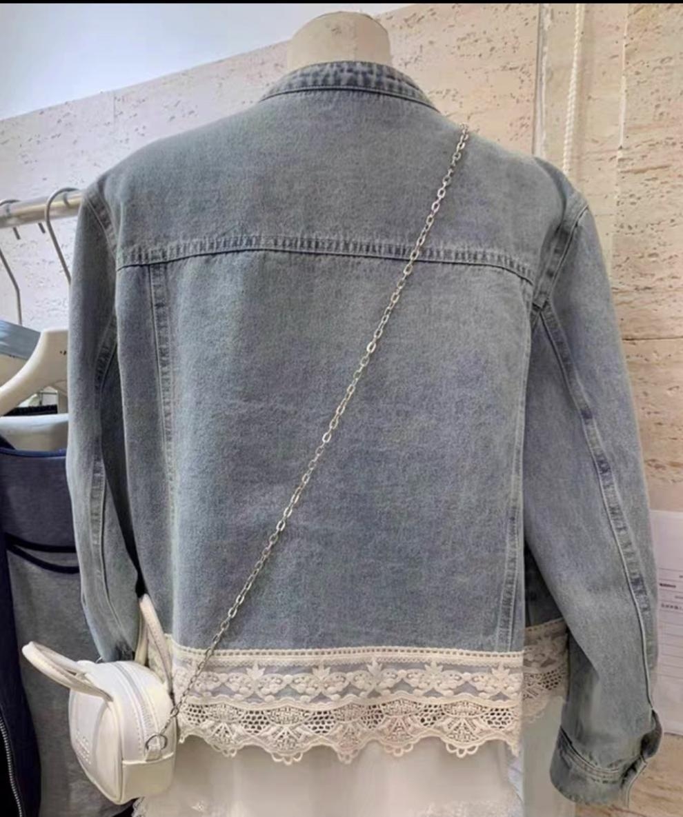骨格ウェーブ裾レースショート丈デニムジャケット