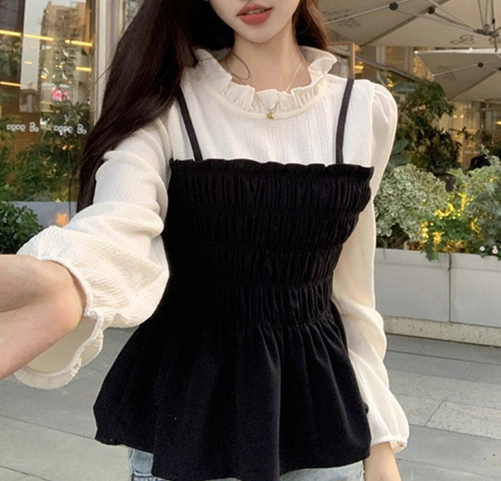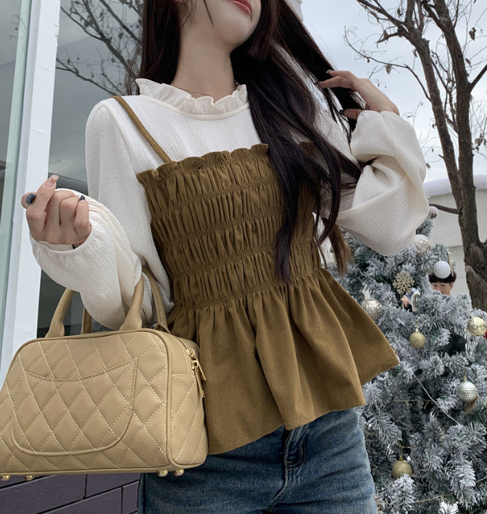 骨格ウェーブシャーリングビスチェドッキングトップス