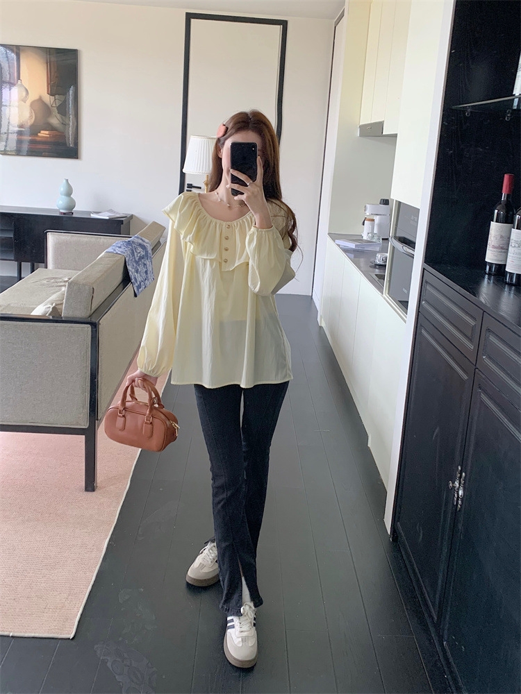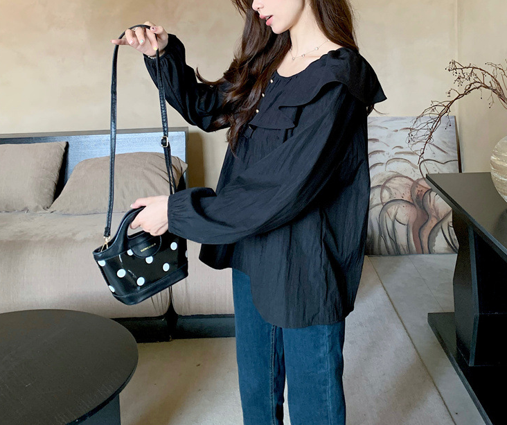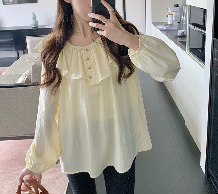 フリルデザインが骨格ウェーブさんの顔まわりに華やかさを添えてくれるブラウス♪動きのあるボリュームのあるフリルで上半身の印象を明るく女性らしい雰囲気に。時には肩を落として表情を変えられるオフショルダーとしての着こなしも可能です。ボトムにインしやすいシルエットで、ハイウエストスカートやパンツと合わせると重心バランスが整い、スタイルアップも叶います。きれいめから通勤コーデまで活躍する一枚です。