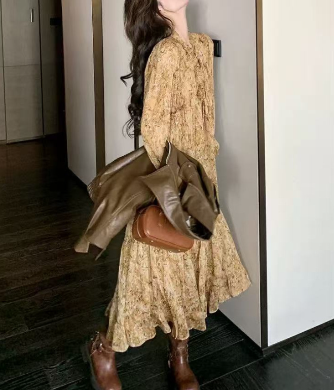骨格ウェーブ花柄ロングワンピース