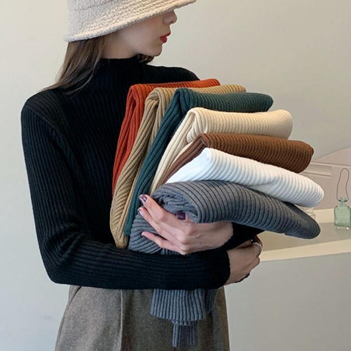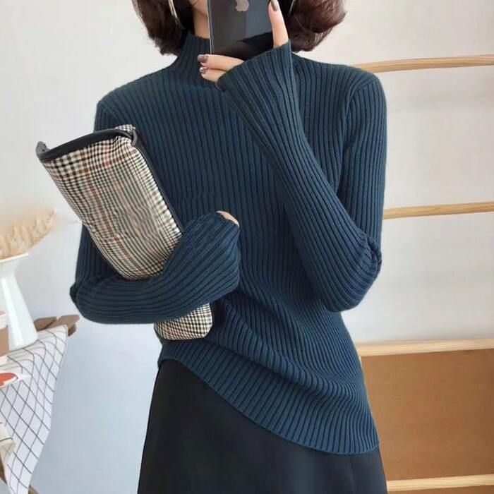 SALE 骨格ウェーブ服プチハイネックニットトップス